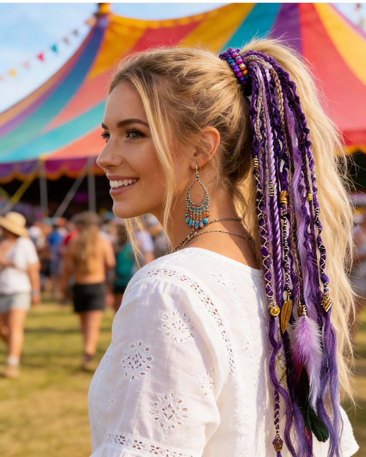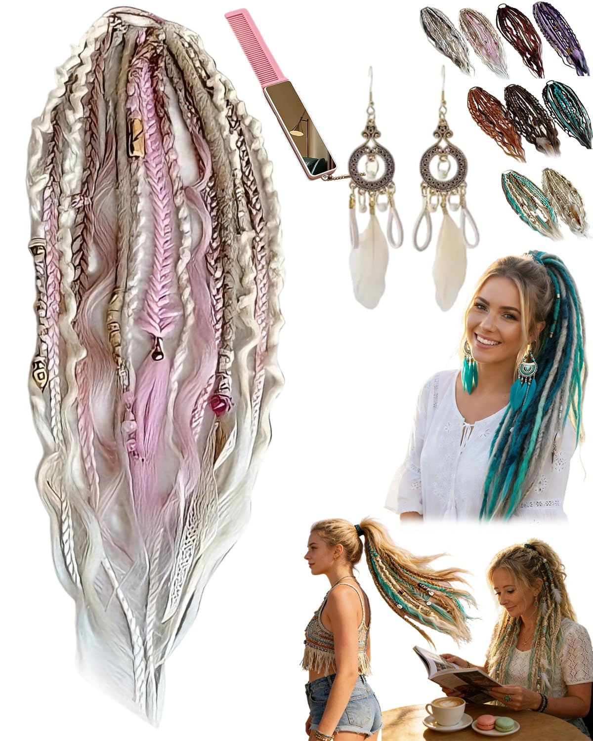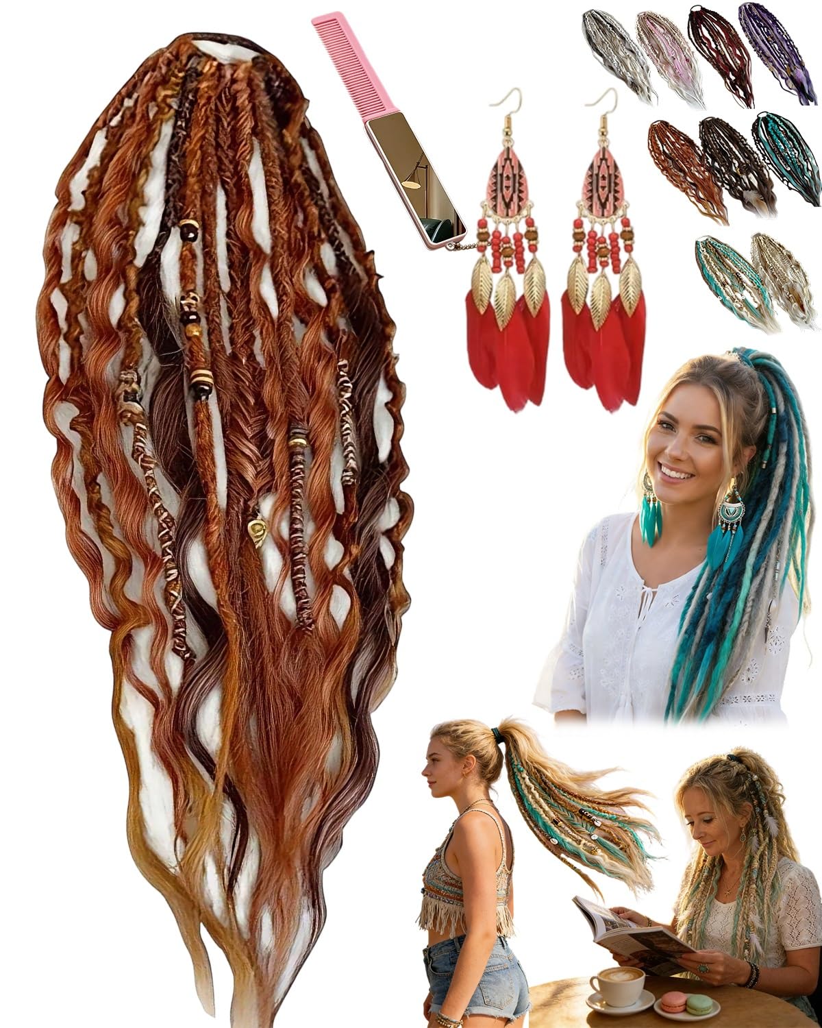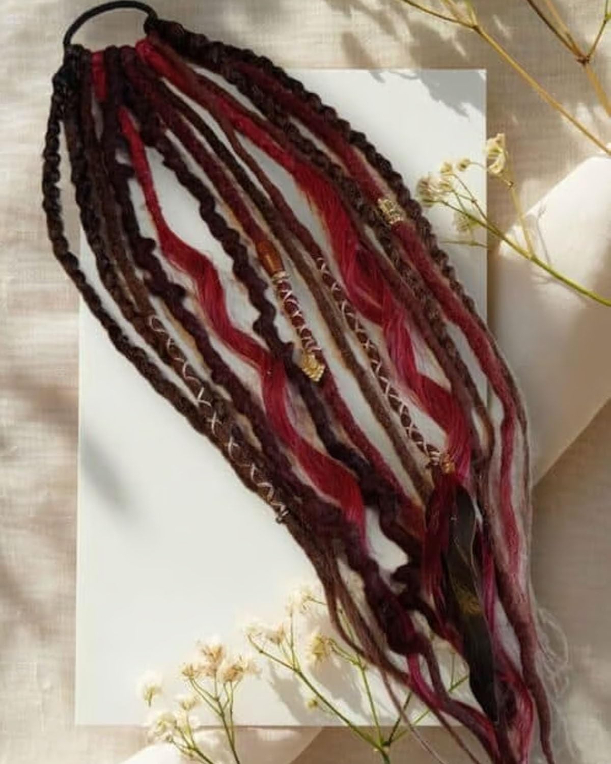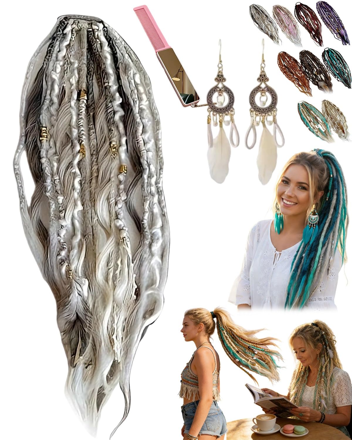 The Elastic Dread Ponytail is the perfect accessory for effortlessly styling your hair with a dash of beachy, boho flair. In just one minute, transform your look with the added texture of dreadlocks, beads, and natural elements—whether you’re going for a laid-back, free-spirited vibe or something a little more adventurous.