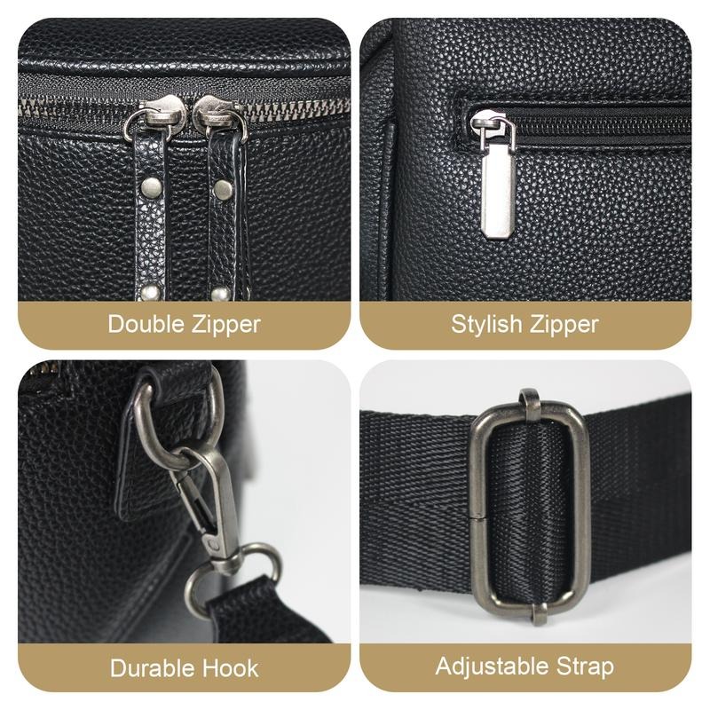 Features a main zipper compartment + interior pockets + rear secure pocket → neatly stores your phone, wallet, keys, and even a small water bottle.No more digging around—everything has its place, ready the moment you need it.