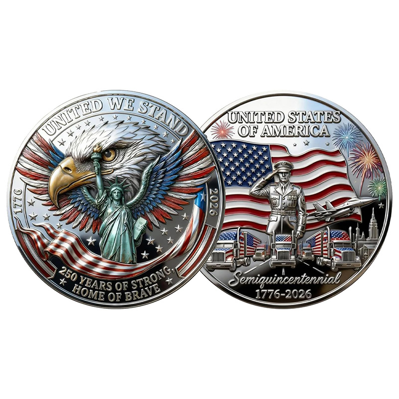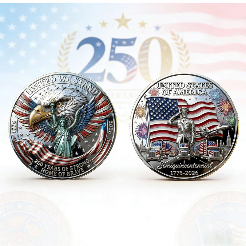 【Double-Sided Detailing】: Both sides of the America 250th Anniversary Commemorative Coin are richly detailed to showcase enduring American values and symbols, making it a standout addition to any collection
