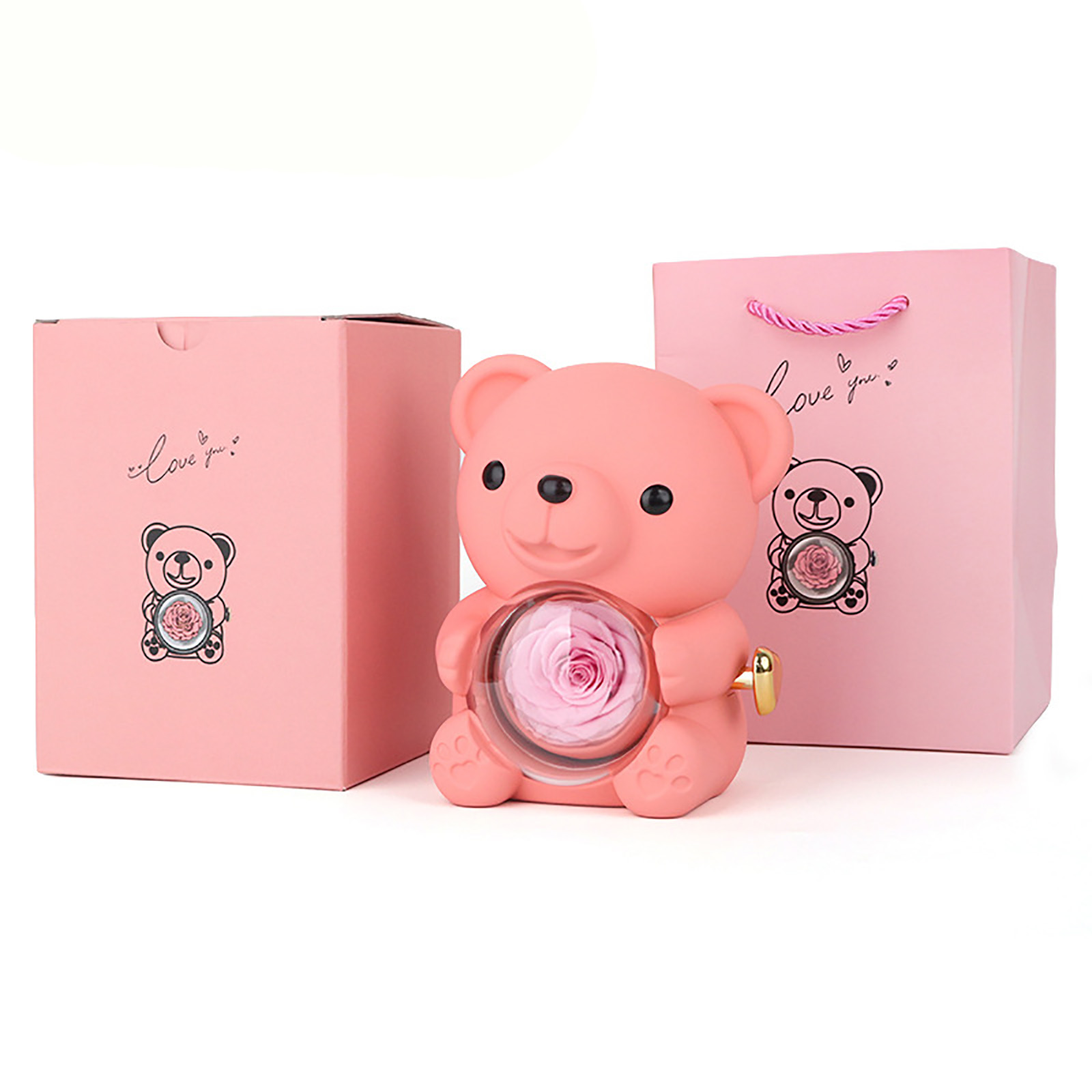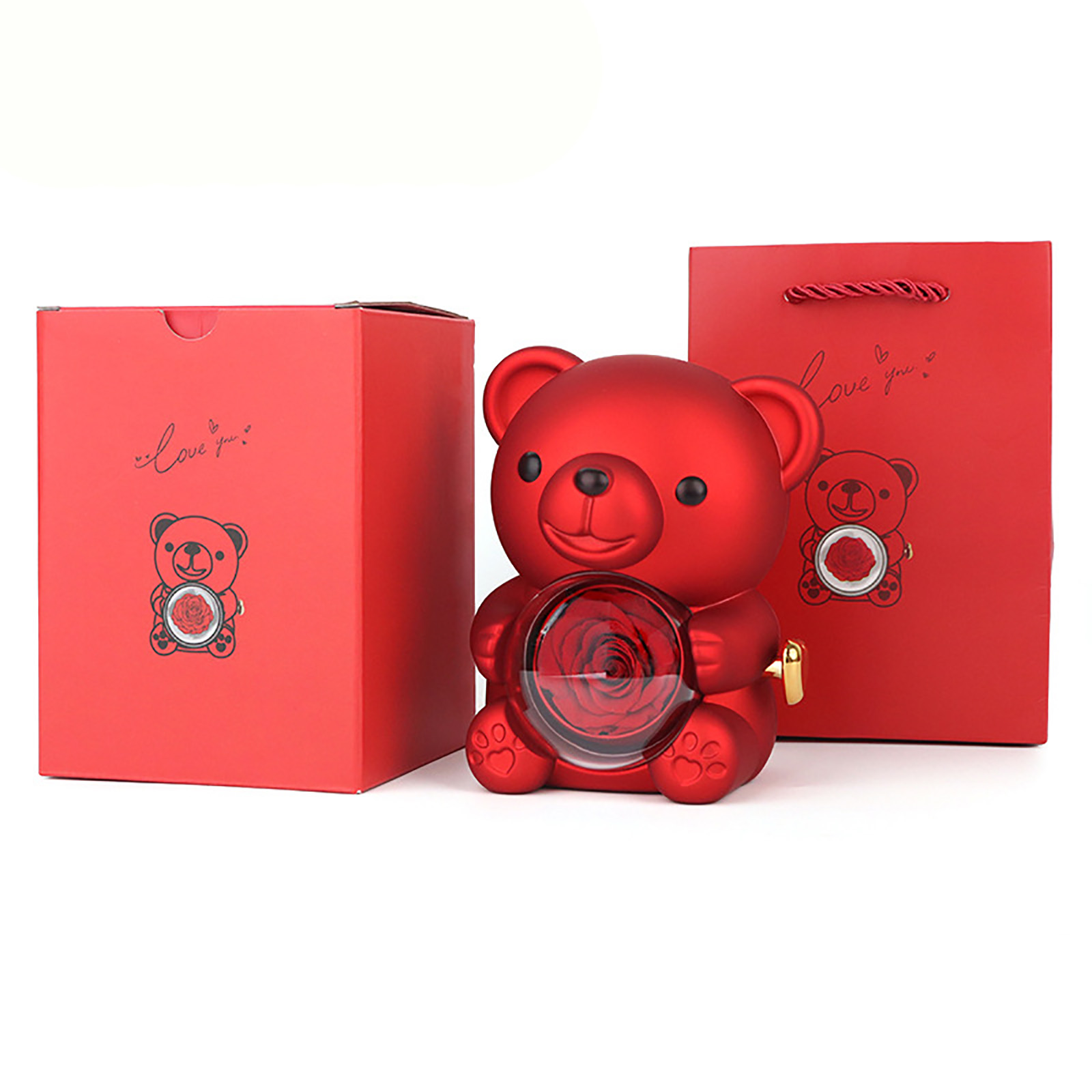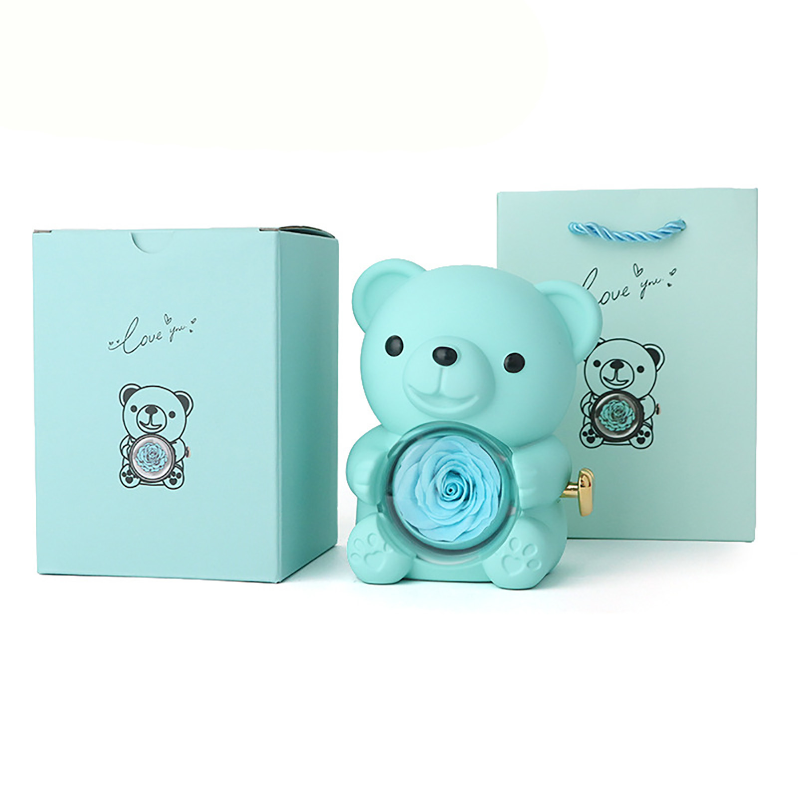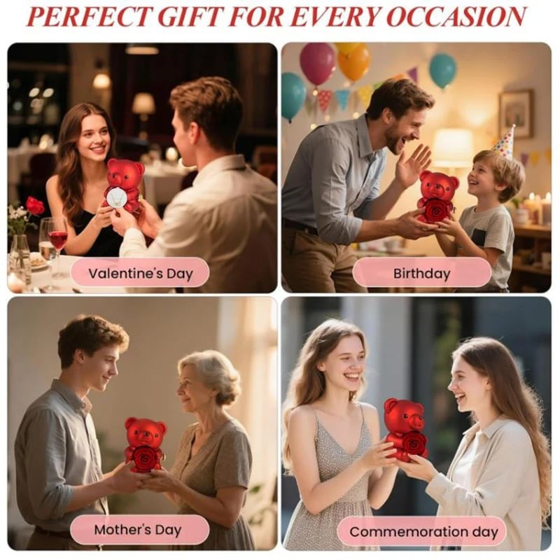 🌹Elegant Design--This Eternal Rose Teddy Bear Gifts Box features an elegant design with a rotating rose, Its compact size makes it easy to carry around, making it a perfect gift for special occasions.