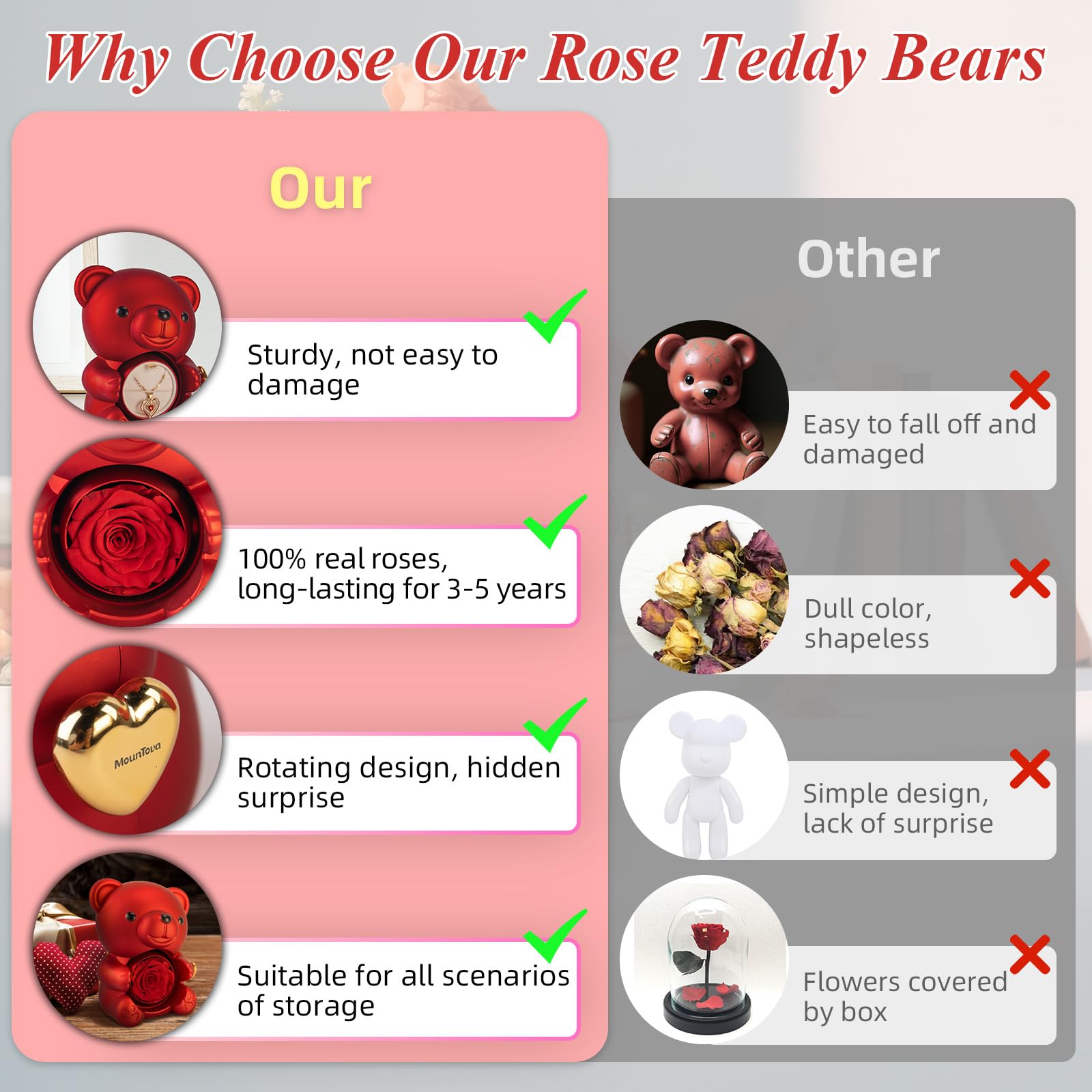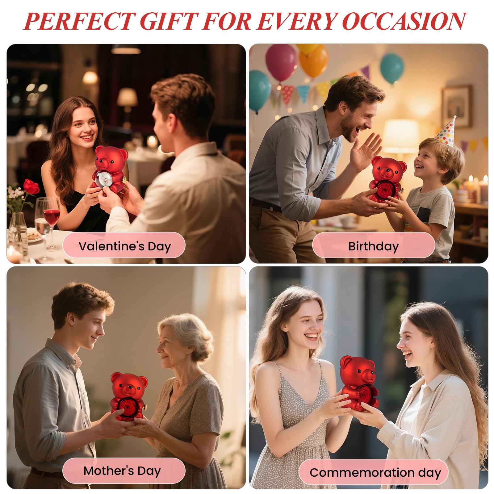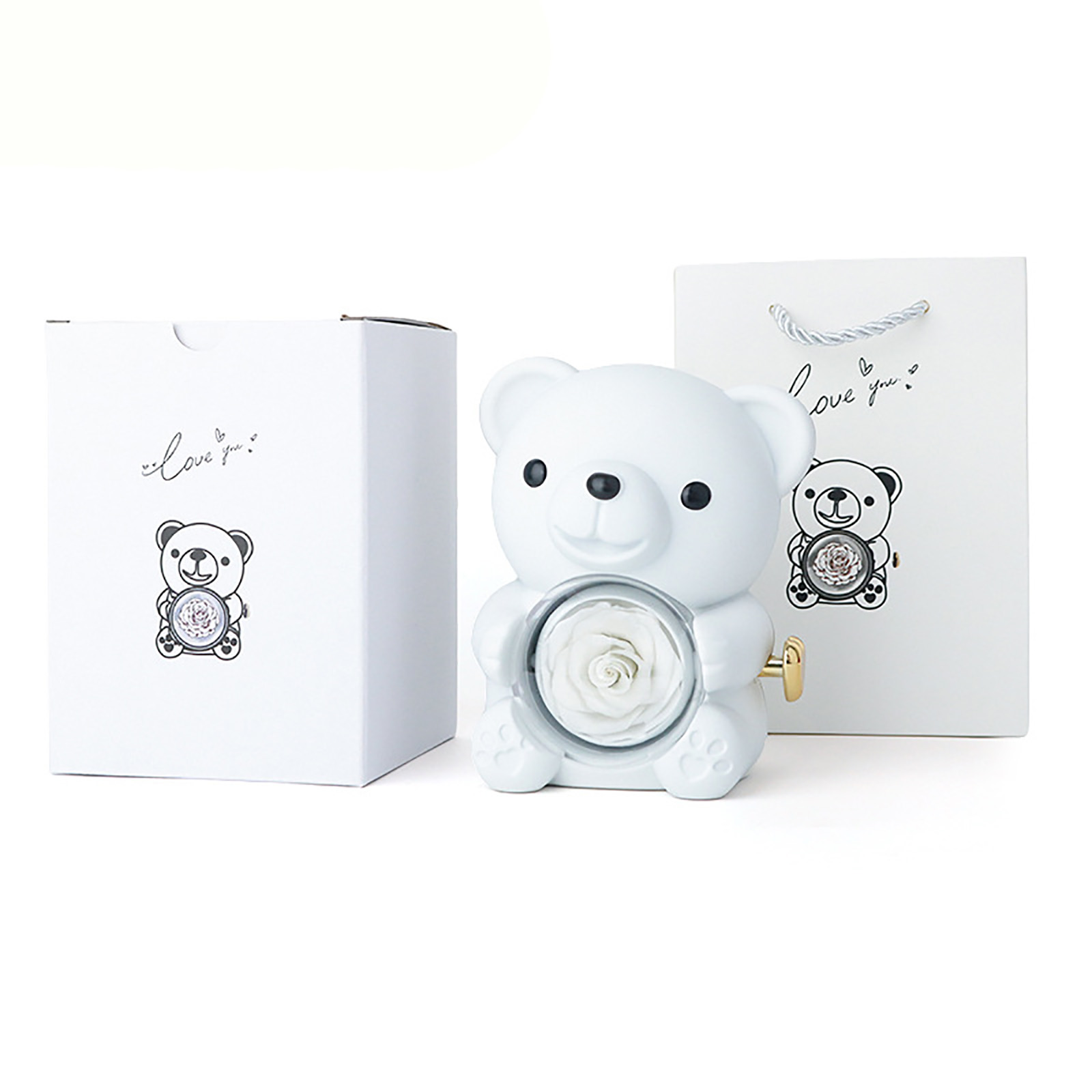 🌹Elegant Design--This Eternal Rose Teddy Bear Gifts Box features an elegant design with a rotating rose, Its compact size makes it easy to carry around, making it a perfect gift for special occasions.