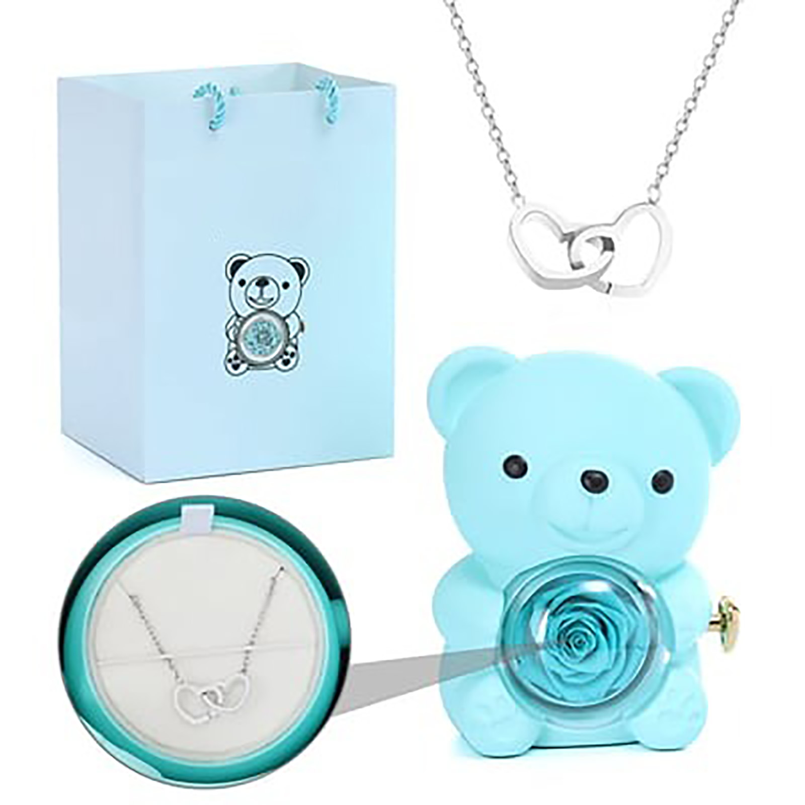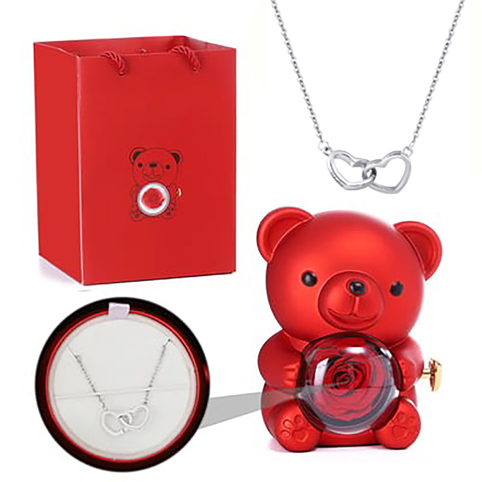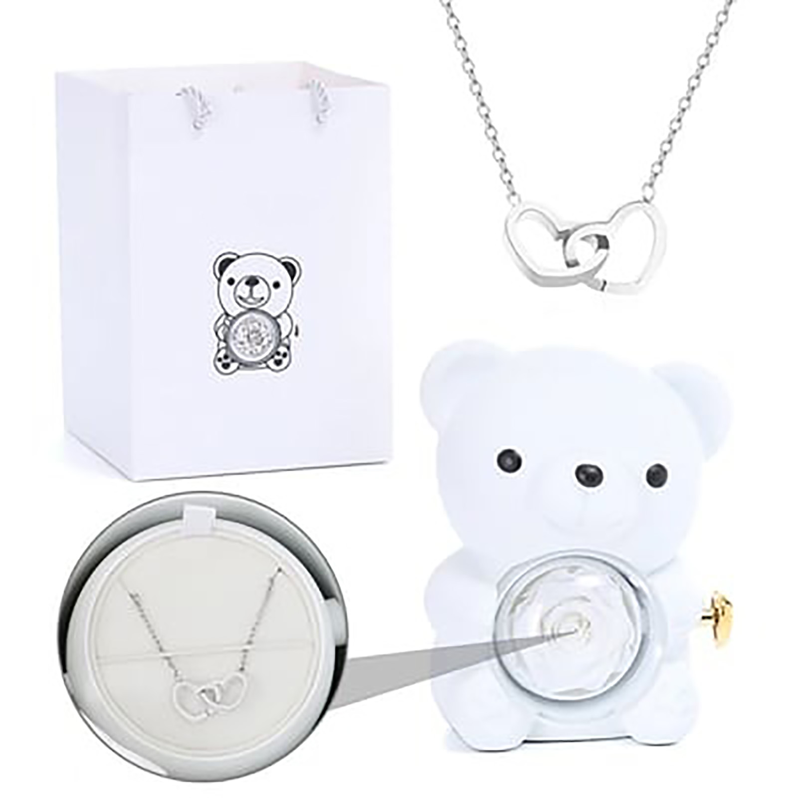 Name: Double heart Necklace revolving eternal flower Bear jewelry box