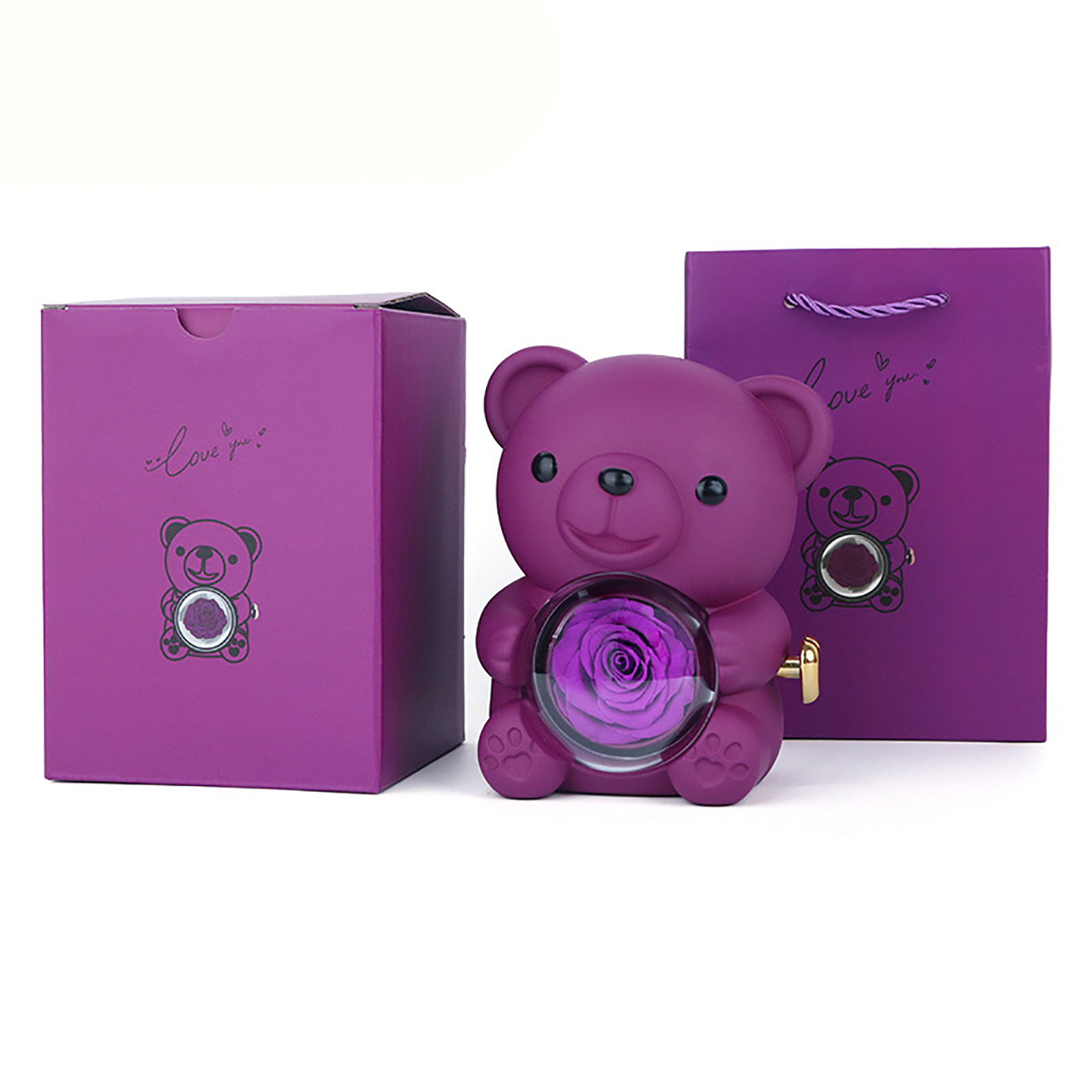 🎁 Elegant Gift Box Presentation: The teddy bear and rose come beautifully packaged in an elegant gift box, making it ready to present without any additional wrapping. The box adds a touch of sophistication and enhances the overall gifting experience.