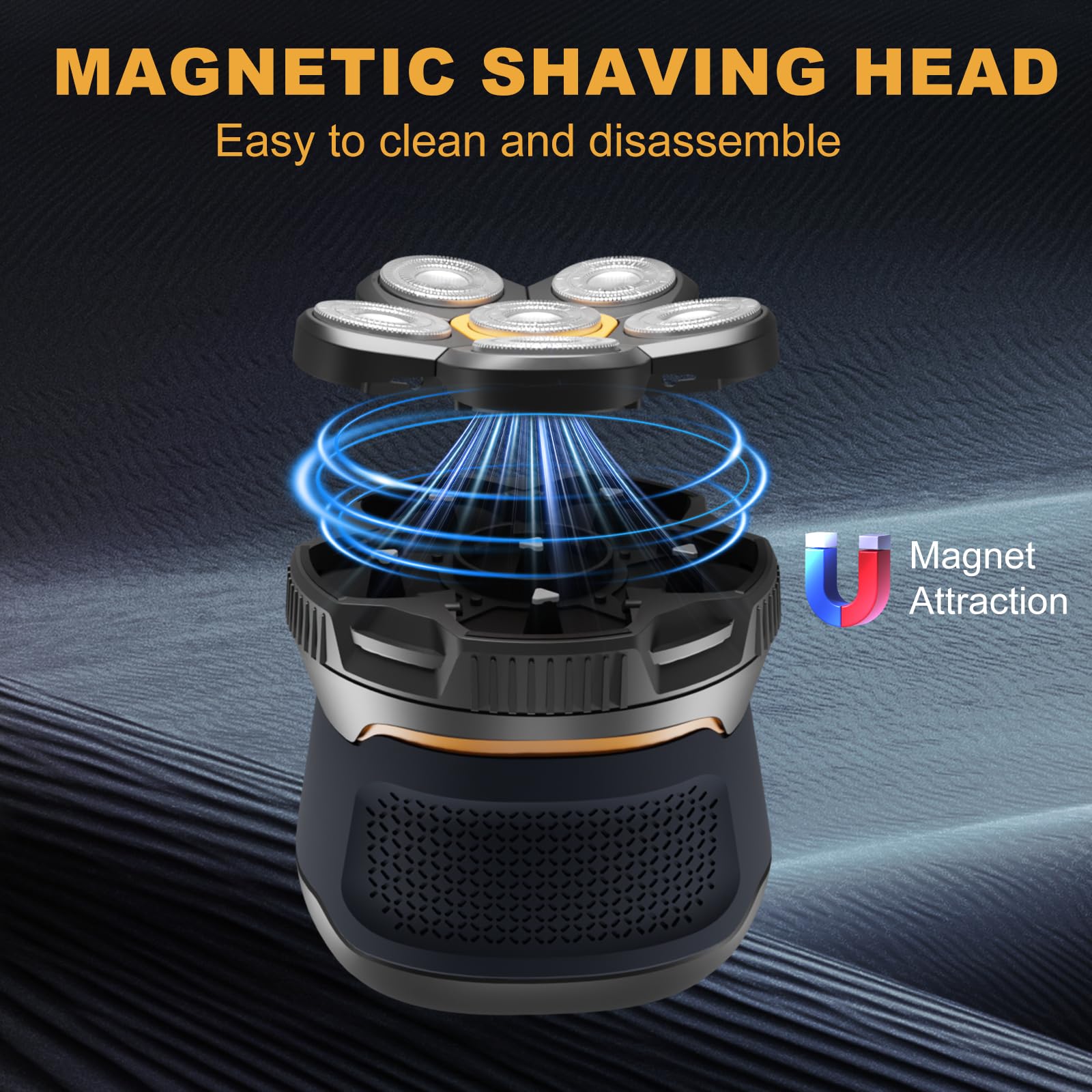 Upgraded Magnetic Removable Shaving Head: The bald head shavers for men Effortlessly detach and clean the shaving head with our advanced magnetic system. Enjoy a hygienic shaving experience without buildup or residue that affects performance.