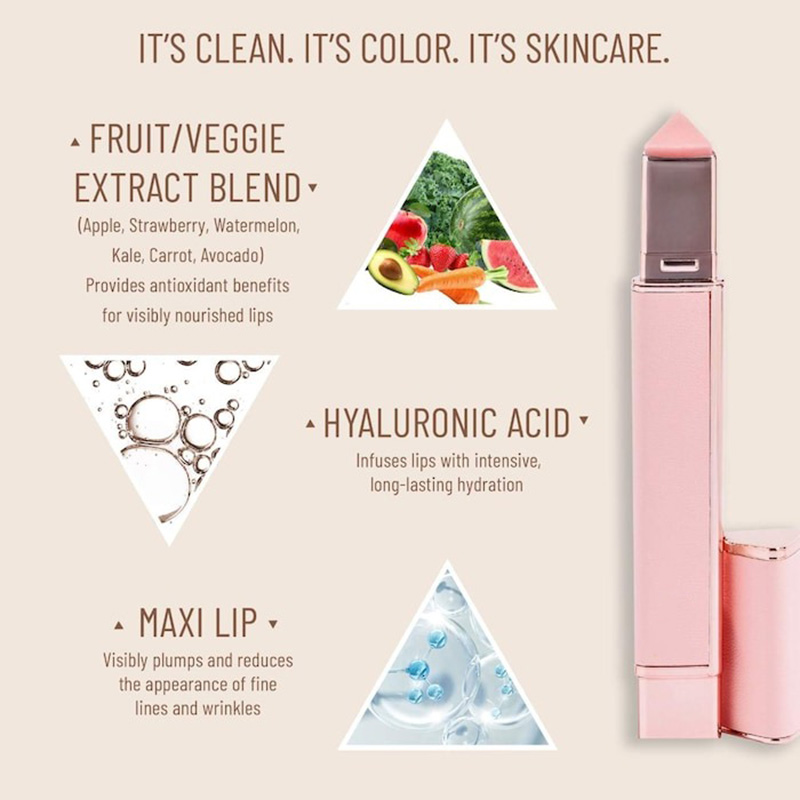 - Fruit/Veggie Extract Blend: Apple, Strawberry, Watermelon, Kale, Spinach, Carrot, Avocado: Provides antioxidant benefits for visibly nourished lips