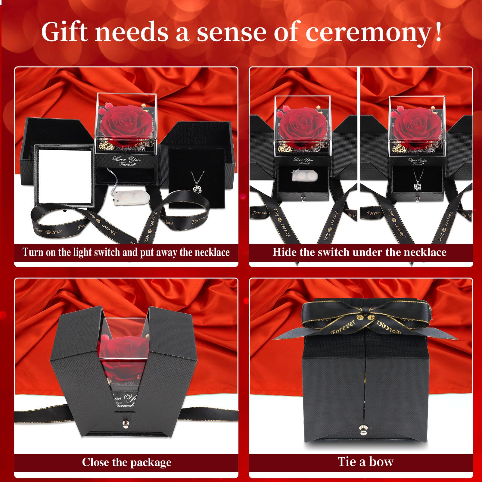 🌹【Different festivals romantic gifts for her】Great idea for women's birthday gifts. Our glass rose with necklace gifts set can be used as birthday gifts for girlfriend, regalos para el dia de la madre, wife birthday gifts from husband, mothers day gifts for mom from daughter,birthday gifts for grandma from granddaughter, perfect gifts for mom from daughter and son, grandma birthday gifts, mother day gifts, valentines gifts for her, anniversary gift for her, i love you gifts for her. Best nighttime decorations to create a romantic atmosphere.