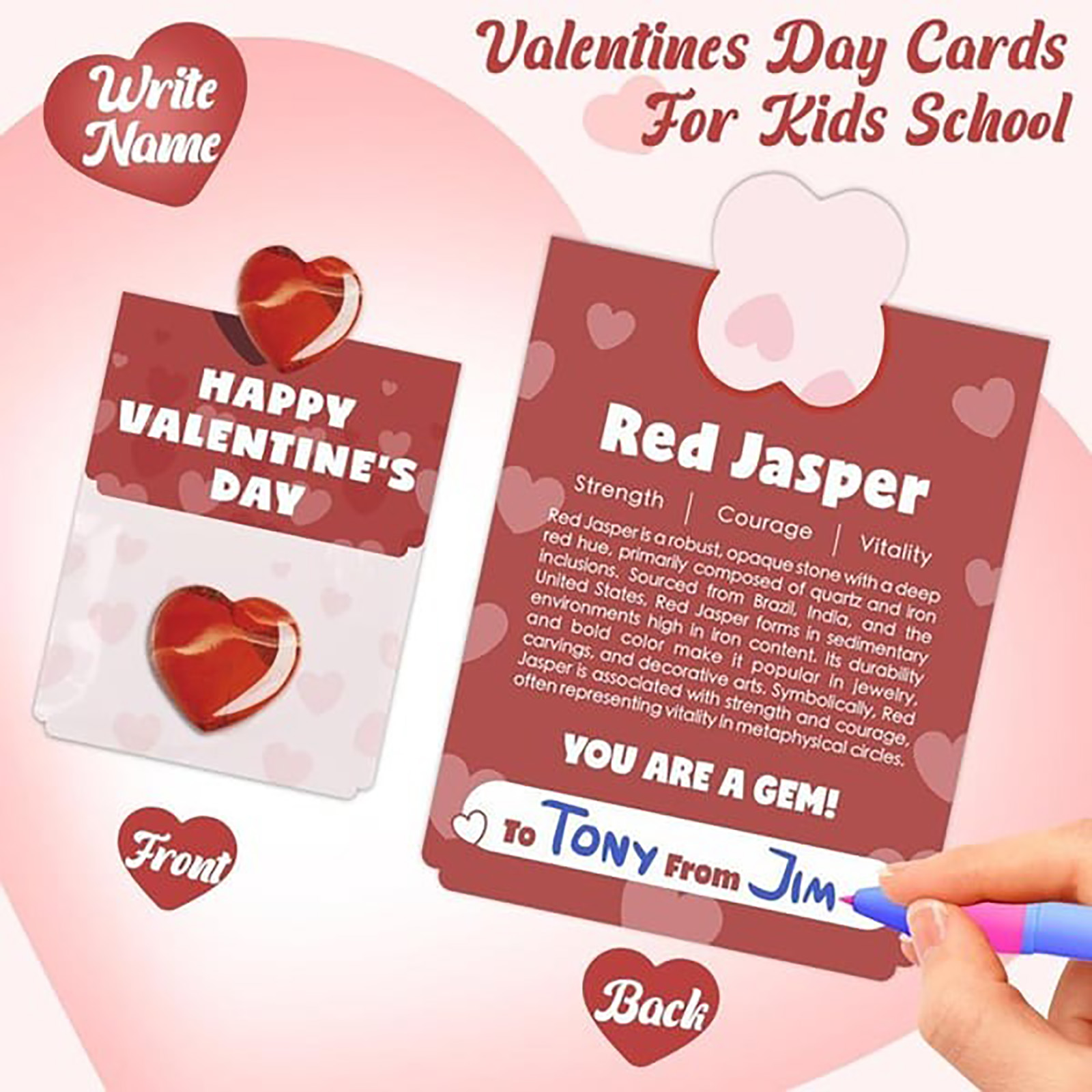 Valentine's Day Gem Gifts For Kids&adults – 24 Pack Prefilled Cards With Heart-shaped Gemstones