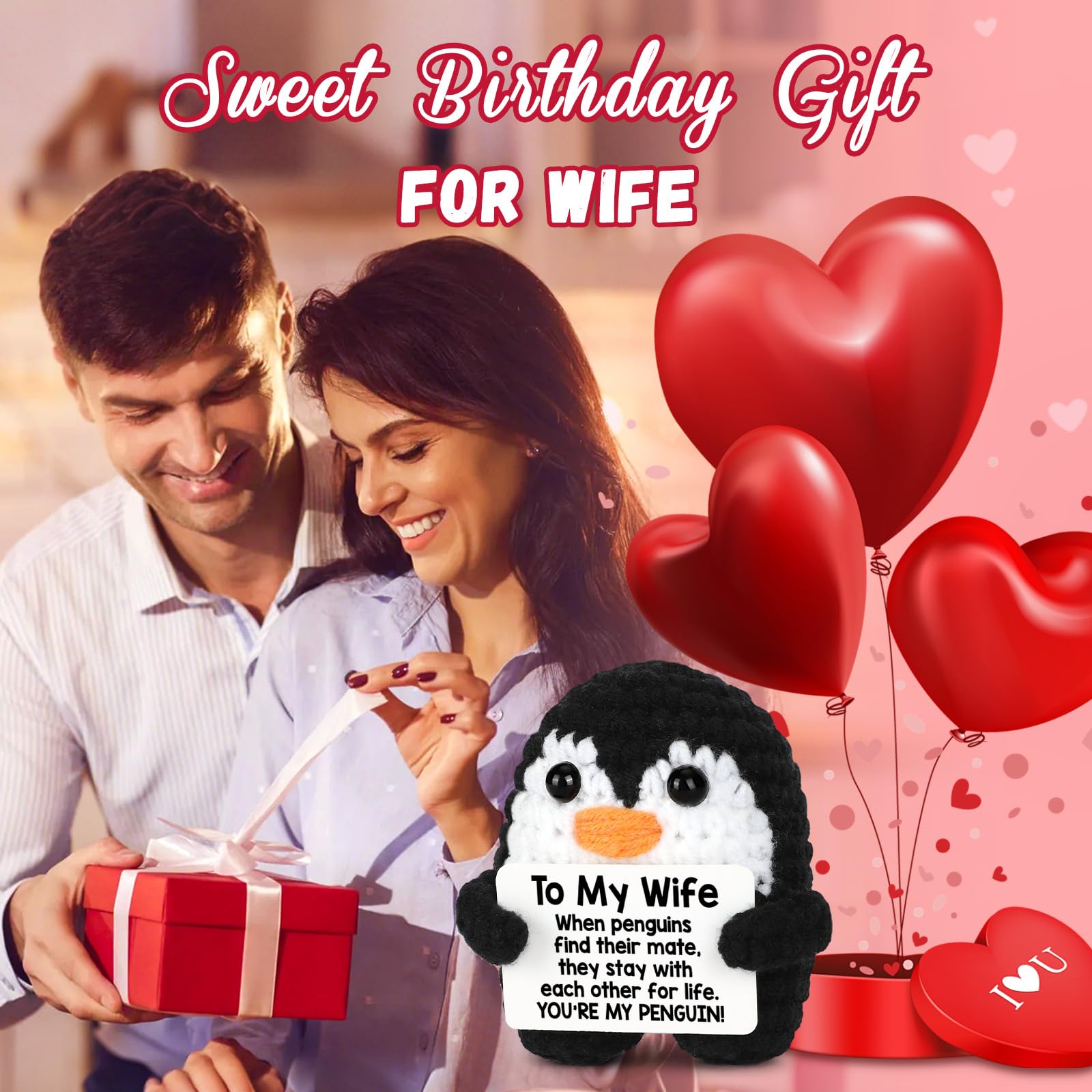 High-Quality Handmade Penguin: These romantic crochet penguins, measuring around 2.9 x 2.9 x 2 inches, are compact and conveniently fit into pockets or backpacks. Crafted from high - quality yarn and cotton, this positive crochet penguin is soft to the touch, rebounds quickly, and is resistant to deformation. Every detail is made with love.Give this fun and loving gift to your wife to add some sweetness to her life!